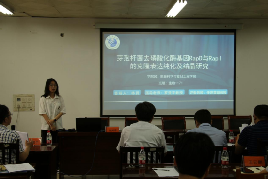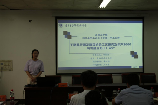 示範答辯由學院副院長羅楚平主持,首先羅院長對答辯會場秩序和答辯程序提出了要求。食品1173朱靈靈、農學1171李威、生物1171林赟以及食品1172胡殿潔四位學生依次進行了答辯,論文題目分别為酵母菌發酵對脫脂薏米營養組成及生物活性的影響、VvIAA18基因響應鹽脅迫的功能鑒定及作用機制研究、芽孢杆菌去磷酸化酶RapD和RapI的克隆表達純化及結晶研究和幹酪乳杆菌發酵豆奶的工藝研究及年産3000噸發酵豆奶工廠設計。四位同學分别從課題的目的與意義、基本内容和主要方法、取得的成果和結論等幾個方面進行了彙報。答辯組教師向答辯學生進行提問并聽取學生的回答,并對每位同學進行了答辯成績評定。最後王院長總結發言,希望學生能以此為契機,培養科學精神和創新精神,腳踏實地、實事求是,未來做出新成果,并預祝後面的學生畢業論文順利答辯。經過2小時緊張而又精彩的答辯,我院2021屆畢業論文示範答辯圓滿結束。