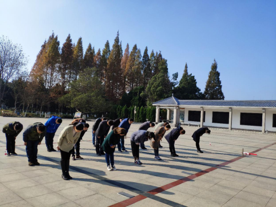 早上9時,全體黨員教師抵達劉老莊鎮八十二烈士陵園。在講解員的引導下,參觀了八十二烈士紀念館,八十二烈士墓及八十二棵青松林,深刻了解學習八十二位抗日烈士的愛國主義革命精神。黨員教師們仔細閱讀一段段詳實的文獻資料,認真端詳一幅幅珍貴的照片。在劉老莊連的旗幟下,在烈士們不完整的名單前,他們駐足凝視,心情沉重,頗多感慨。在紀念碑前,全體黨員教師向烈士敬獻花圈,三鞠躬,默哀緻敬,并莊嚴重宣入黨誓詞。
