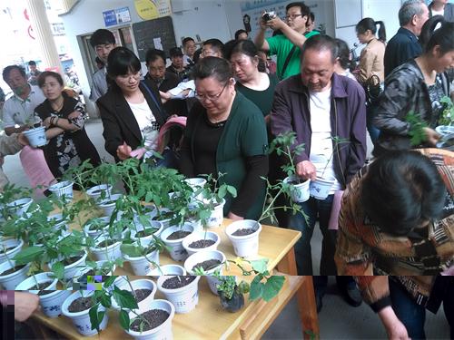 本次活動前期,生化學院培育了500餘株适合家庭陽台和田間種植的番茄、辣椒、黃豆、南瓜、露草等秧苗,并精心制作了宣傳展闆、宣傳單。活動開始,園景系教師向社區居民簡要介紹了陽台園藝的特點、植物選擇要素,重點介紹了居民們日常生活中常見的番茄、辣椒栽培要點。活動受到了小區居民們的熱烈歡迎,現場群衆表現踴躍。在和現場居民群衆交流中,劉強輝書記表示,活動經過了精心策劃,用我們自身優勢,亮出了黨員身份,在實際行動中為社區群衆服務。