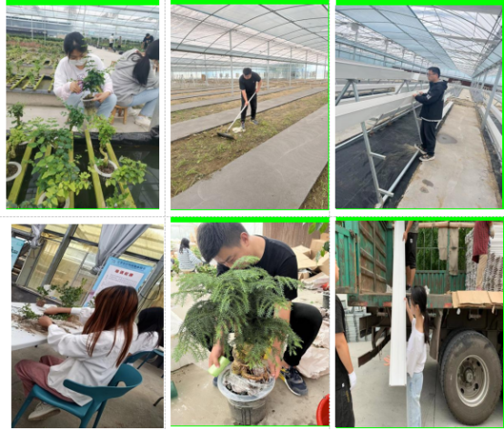園景系教工黨支部黨員教師首先來到公司生産基地,現場了解學生實習情況,并觀看了學生工作技能展示。園藝專業的學生在公司基地實習一個月裡,學習了枝條修剪、盆景壓彎、水培洗根、溝渠排水、病蟲害防治等專業技能和知識,實踐的打磨促進學生紮實地掌握植物生産領域的技能。同時,生産實習還結合企業自身優勢,讓學生深入接觸銷售業務,體驗銷售的各個環節,如盆栽打包、直播帶貨、運輸裝卸等。這樣的實習讓學生不但提高了解決生産實際問題的能力,還具備适應農業現代化生産的管理和銷售能力,使學生的學習向社會和市場延伸了一步,提高了學生未來就業競争力。