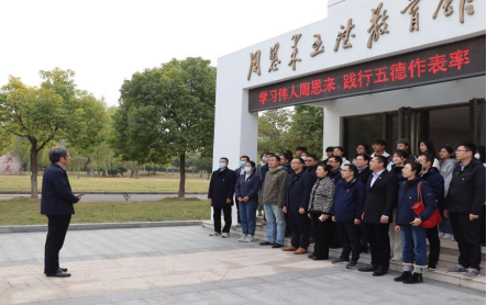 在周恩來“五德”教育館前,朱永江書記發表了講話,他強調,周恩來“五德”精神是對中華民族源遠流長的傳統“德”治思想與馬克思主義官德思想的傳承,是對貫徹全面從嚴治黨新要求的生動诠釋。黨的二十大報告指出,要堅定不移全面從嚴治黨,深入推進新時代黨的建設新的偉大工程。周恩來同志是學習黨章、遵守黨章,嚴守政治紀律、組織紀律、廉潔紀律、工作紀律、生活紀律的典範。師生黨員要嚴于律己,以高尚道德砥砺品格,以身載道、以行示範,做有理想、敢擔當、能吃苦、肯奮鬥的時代新人。