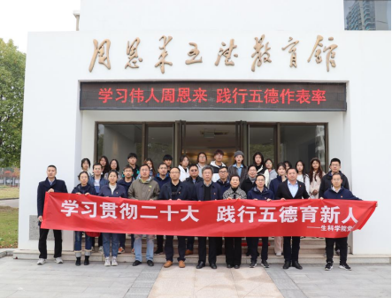 為深入學習宣傳貫徹黨的二十大精神,引導師生黨員學習恩來精神,踐行初心使命,近日,生科學院師生黨員骨幹赴周恩來“五德”教育館開展“學習貫徹二十大 踐行五德育新人”主題黨日活動。生科學院黨委書記朱永江、院長王朝宇、學院各部門負責人、學生黨員骨幹參加了活動。