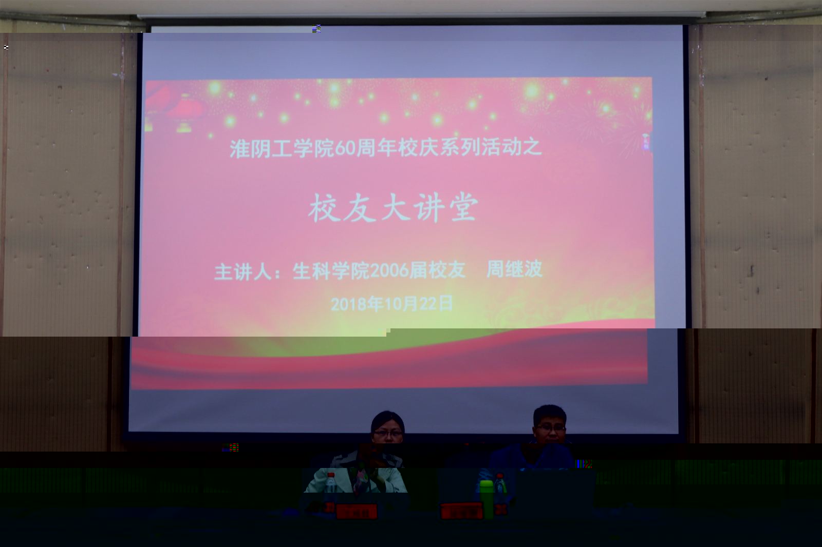10月22日晚,生科學院于圖書館報告廳開展校慶60周年系列活動之“校友大講堂”活動,本次活動邀請了徐州九維農業科技有限公司總經理、生科學院食品工程專業2006屆校友周繼波返校開講。全院300餘名師生代表參加了此次報告會,報告會由學工辦主任王明霞主持。