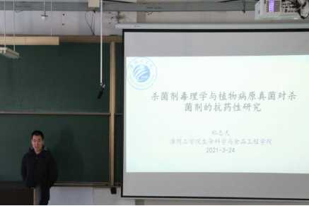 首先,鄭博士講解了殺菌劑在日常生活中的使用和農藥使用期限,使用時間越長農藥效果越差,從而引發同學們對植物病原真菌抗藥性的思考。接着,鄭博士列舉鐮刀菌引起的病害,各種毒素對食品安全的惡劣影響以及殺菌劑研究的重要性。最後,鄭博士以自己的研究項目為例,解釋了各種複雜的實驗,印證了對殺菌劑毒理學的研究成果。