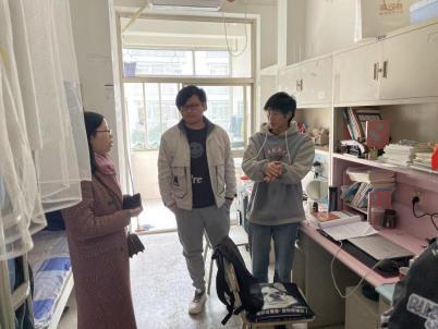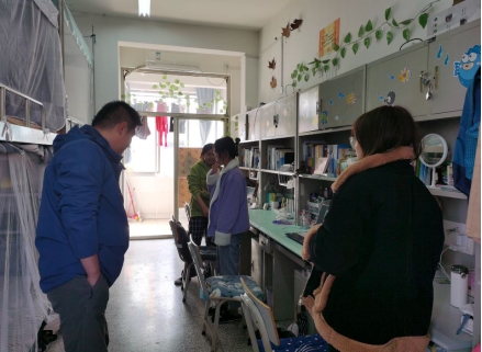 在宿舍檢查過程中,老師們詢問同學們新學期返校後的生活和學習情況,針對用水用電安全、宿舍通風和衛生等方面存在的問題及時提出、指導同學們改正。