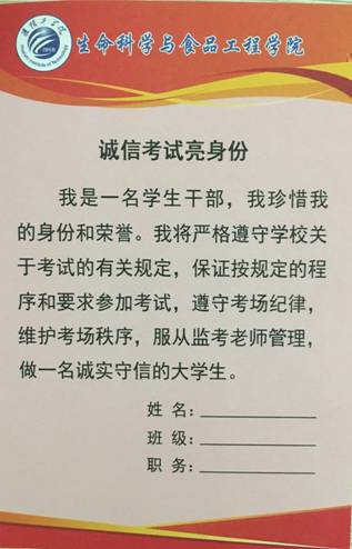 1月3日中午,生科學院于28号樓208舉辦了學生幹部誠信考試亮身份儀式。生科學院輔導員王明霞、夏繼林和各班級班委參加了此次活動。