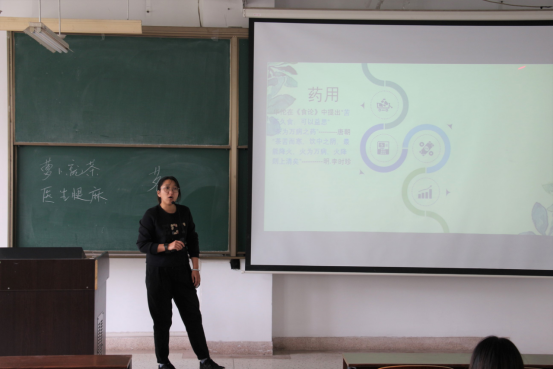 講座開始,黃博士用了兩個謎語引出了本次講座的主題——茶,黃博士首先介紹了茶的起源,她指出1824年在印度阿薩姆發現了野生茶樹,1833年在錫比薩加發現成片的野生茶樹,但是在中國境内發現了距今三千兩百多年的茶樹例子為我們論證了中國茶文化淵遠流長。