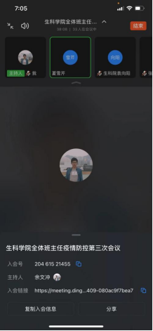 4月12日晚7點,生科學院利用釘釘網絡平台召開本學期全體班主任疫情防控第三次會議,會議由院副書記、副院長夏雪芹主持,學院全體班主任、輔導員參加會議。