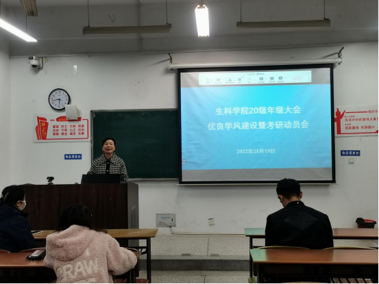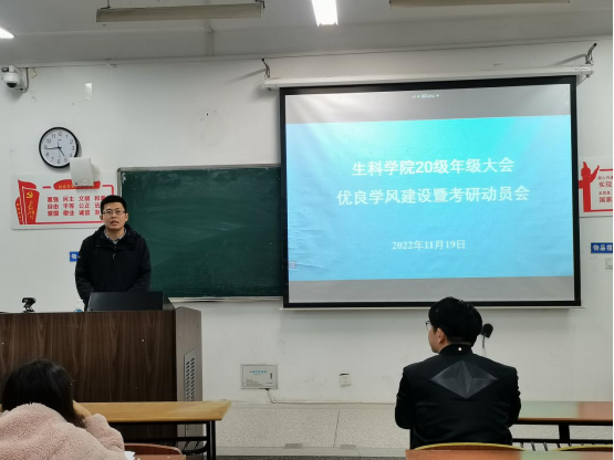 為進一步加強學院優良學風建設,提升考研促學風的引領作用,11月19日下午4:30,在22号樓108等教室召開生科學院2020級優良學風建設暨考研動員會。院黨委副書記、副院長夏雪芹,學工辦主任餘文沖,2020級學生輔導員張愛芳以及全體2020級學生參加本次會議。會議還特别邀請考研名師米雷老師做考研專題講座。