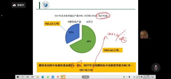 首先,袁博士講述了飼料配方及其概略養分組成,帶領同學們進入蛋白酶的研究發展史。袁博士先以魚粉的發展出發,介紹我國水産養殖總量的高速增長,引出了豆粕酶解産物。通過袁博士對其作用的詳細講解,讓同學們充分認識并了解到蛋白酶解物在水産飼料中的應用的重要意義。
