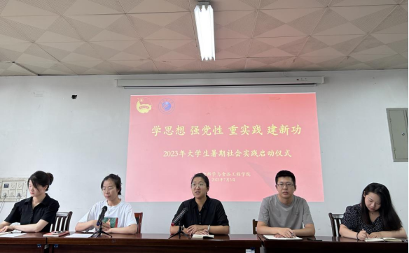 7月3日,生科學院在208舉辦2023年大學生暑期社會實踐啟動儀式。生科學院院長助理黃志楠、學工辦主任餘文沖、團委書記王曉樂、輔導員吳靜、劉林新、暑期社會實踐團隊成員參加了本次會議。會議由生科學院團委書記王曉樂主持。