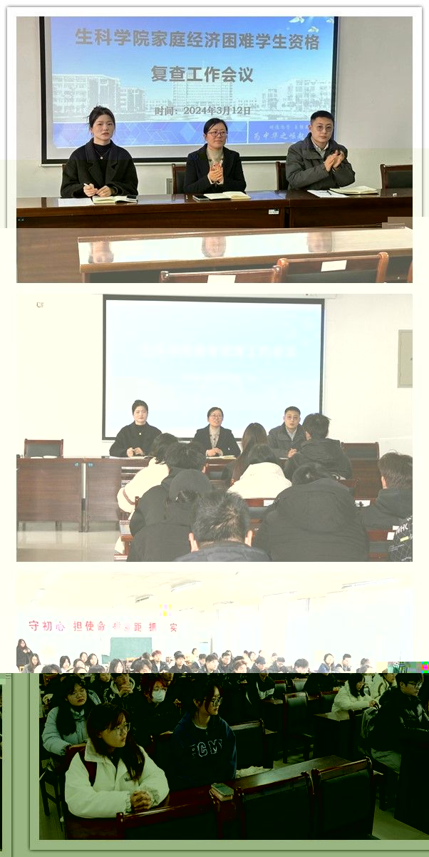 會議圍繞學院家庭經濟困難學生資格複查和學生宿舍管理工作開展。劉林新老師部署了家庭經濟困難學生資格複查工作,向學生幹部詳細介紹認定對象、等級、工作程序、評議等相關内容,強調了複查工作的重點及注意事項。蘇子亮老師介紹了目前學院宿舍的基本情況、本學期宿舍工作安排,對宿舍衛生、安全、室友相處等問題作詳細指導。