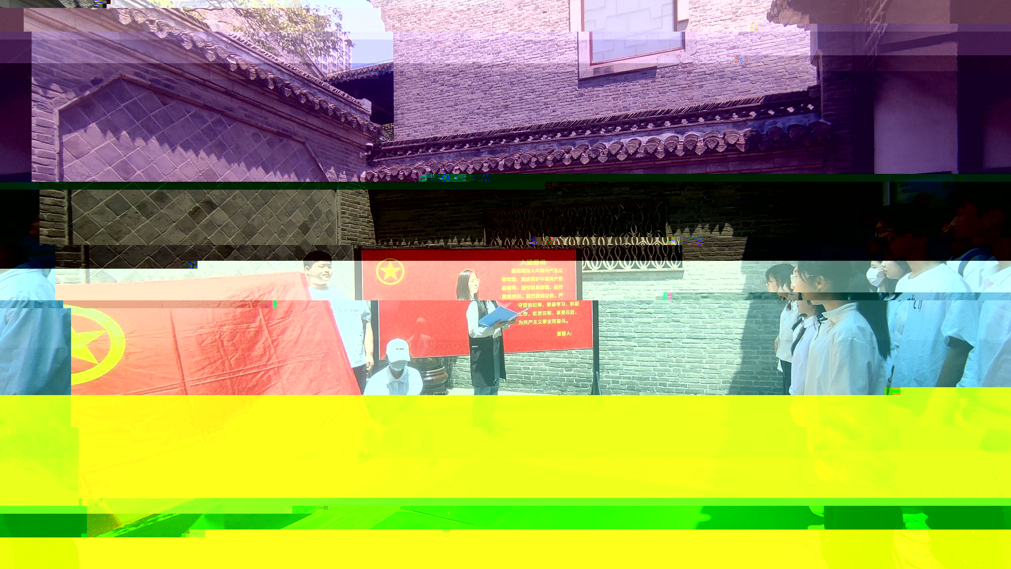 第五項議程全體團員開展入團宣誓。新團員們緊握右拳,面向鮮豔的團旗,莊嚴宣誓。同學們铿锵有力的誓言,表達了他們加入團組織的堅定決心,展現了新時代青年的風采和擔當。