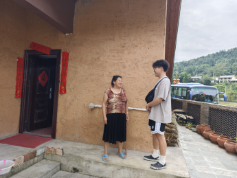 圖為同學采訪中皇村村民生活變化和聽取當地菊種植特色 蔣其楓攝