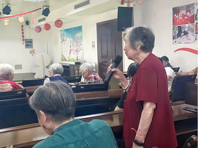 圖為敬老院一位奶奶深情演唱《煙雨唱揚州》