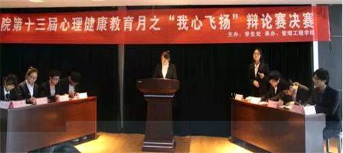 5月27日下午校第十三屆心理健康活動月之“我心飛揚”辯論賽在逸夫樓814舉行。我院代表隊一路過關斬将進入決賽與東道主管理工程學院代表隊對壘,經過激烈角逐,最終摘得決賽冠軍。