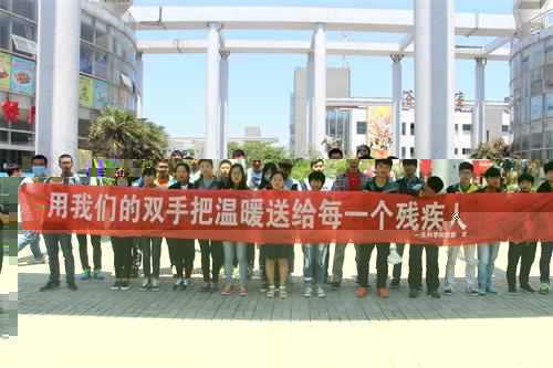 5月16日中午,生科學院于七、八食堂門口舉辦了題為“用我們的雙手把溫暖送給每一個殘疾人”全國助殘日的宣傳活動,同學們積極參與,并在橫幅上簽上自己的名字,表示對殘疾人事業的關注。