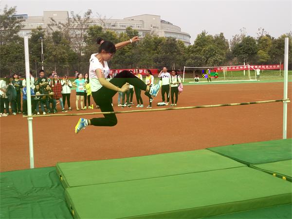 10月22日,伟德国际1946官网第十六屆校運動會在南苑操場舉行。下午一點半,女子跳高項目正式開始,生科學院張倩男同學經過激烈角逐,于比賽中脫穎而出,獲得第四名的佳績。