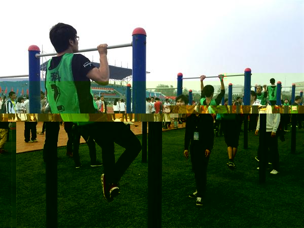 賽前,綠茵場上,生科學院的健兒們做好充分的熱身準備,他們目光堅定,摩拳擦掌,蓄勢待發。随着一聲令下,我院運動員們迅速緊握單杠,奮力向上,隻見他們身上的肌肉緊繃,動作協調一緻,緊跟口令。盡管一段時間過後,速度微降,略顯疲态,然而健兒們沒有輕言放棄,依舊堅持做下去,場上觀衆的加油助威聲更是對他們的激勵。第一組拼到了體能極限,之後第二組接着上,他們依舊發揮良好,士氣高昂,不慌不亂,更是同樣堅持到了最後,這種絕不言棄精神感染了場上每一個人,引得喝彩聲不斷。