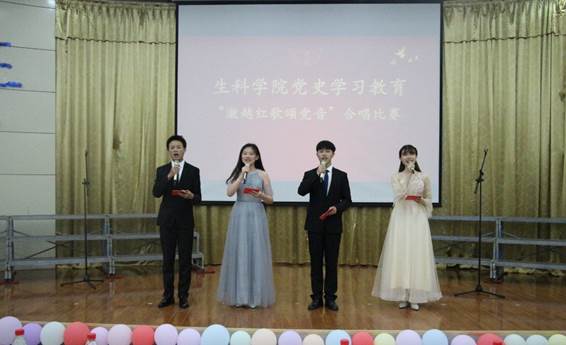為深入學習貫徹《中共中央關于在全黨開展黨史學習教育的通知》和習近平總書記在黨史學習教育動員大會上的重要講話精神,激勵廣大青年學生發揚紅色傳統、傳承紅色基因,5月30日晚,生科學院在圖書館報告廳舉辦黨史學習教育“激越紅歌頌黨音”合唱比賽。校組織部副部長劉化喜,校宣傳部副部長李博瀾,校團委副書記蔡熙文,學院黨委副書記、副院長夏雪芹,學院學工辦主任王江川、團委副書記王曉樂,輔導員朱勝男出席此次活動,生科學院2020級同學參加此次活動。