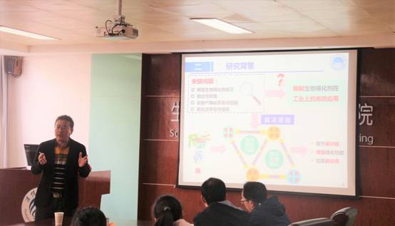11月15日上午,華南理工大學婁文勇教授應邀在行成樓204會議室為伟德国际1946官网師生做了題為“生物催化過程調控與應用”的學術報告。報告會由院長王朝宇教授主持,學院新進博士及部分研究生聆聽了報告。