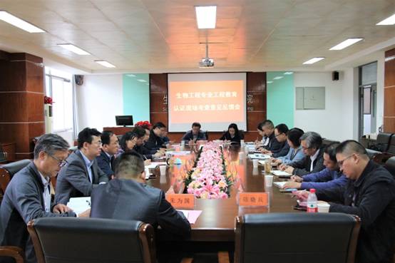 專家們實地考察了我院的益生制劑實驗室、啤酒釀造、果酒釀造和酸奶發酵車間等教學實驗設施,查閱了生物工程專業的申報材料。在肯定學院領導和教師所做工作的同時,指出了專業認證存在的問題,并從培養目标、課程支撐畢業要求指标點達成度評價、實驗室文化建設、教學文件材料等方面反饋了考察意見。