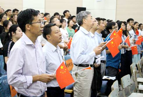 随後,全場師生共唱《我和我的祖國》,獻禮新中國70年華誕。