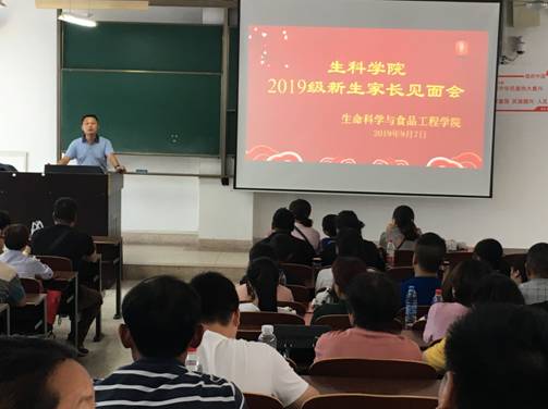 生科學院于9月7日下午在YFJ0204教室召開了2019級新生家長見面會。生科學院黨委副書記、副院長周定晖、2019級輔導員王明霞、夏繼林以及學生家長參加了此次會議。