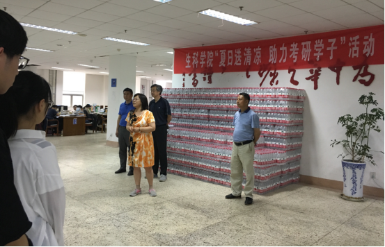 為了鼓勵暑期留校備戰考研的2016級學子,7月3日下午,生科學院在枚乘路校區圖書館考研教室開展“夏日送清涼 助力考研學子”活動,生科學院黨委書記徐靜、黨委副書記、副院長周定晖、副院長周青、副院長李相前深入圖書館考研教室看望了300餘名考研學子。