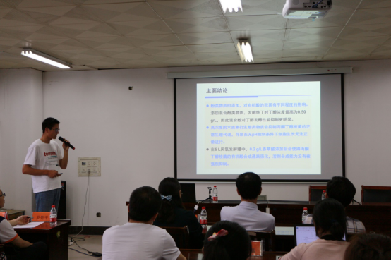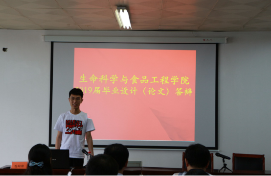 2019年6月6日下午2:00,我院在學院28208會議室進行2019屆本科畢業設計(論文)示範答辯工作。由學院領導、系主任、系書記、專業負責人和部分教師以及兼職教授呂軍仁(淮安市鴻瑪生物科技有限公司總經理)組成答辯組,對參加示範答辯的同學進行答辯成績評定,部分畢業生也來到答辯現場聆聽。