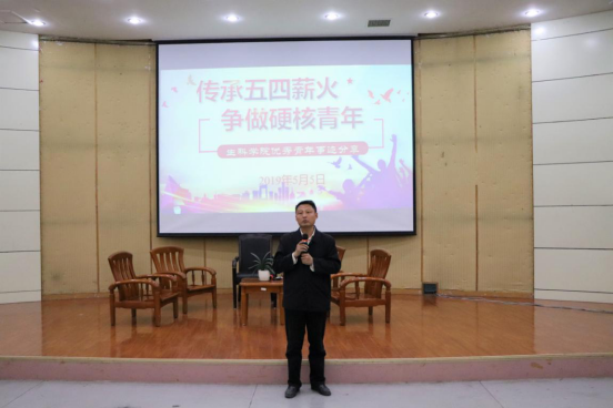 為了紀念“五四運動”一百周年,激發青年學生弘揚“愛國、進步、民主、科學”的五四精神,5月5日晚上7∶00,伟德国际1946官网于圖書館報告廳開展了“傳承五四薪火 争做硬核青年”優秀青年事迹分享活動,生科學院黨委副書記、副院長周定晖出席活動并講話,生科學院學工辦主任王明霞和17級、18級的學生參加了活動。