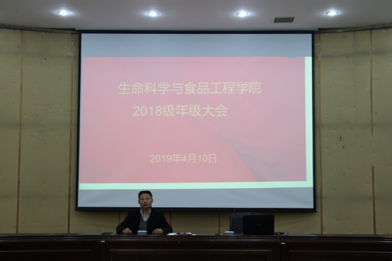 2019年4月10日下午3點,生科學院在圖書館報告廳召開2018級學生年級大會,本次會議由生科學院黨委副書記、副院長周定晖主講,18級全體學生參加了此次會議。