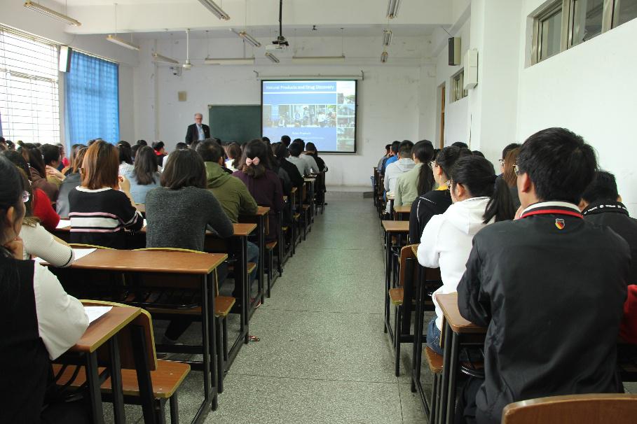 Peter Proksc教授向在場師生們簡要介紹了杜塞爾多夫大學的基本情況和目前藥物領域研究熱點。Peter Proksch教授主要從事植物及植物内生真菌的活性次級代謝産物研究的工作,本次報告Peter Proksch教授主要講述了來源于植物和微生物的天然産物藥物的發現曆史和當前研究的進展。報告内容深入淺出,為我院科研工作提供了新思路。講座最後,在場的老師和學生積極踴躍地提問,Peter Proksch教授悉數予以解答,使老師和同學們開闊了學術視野,受益匪淺。