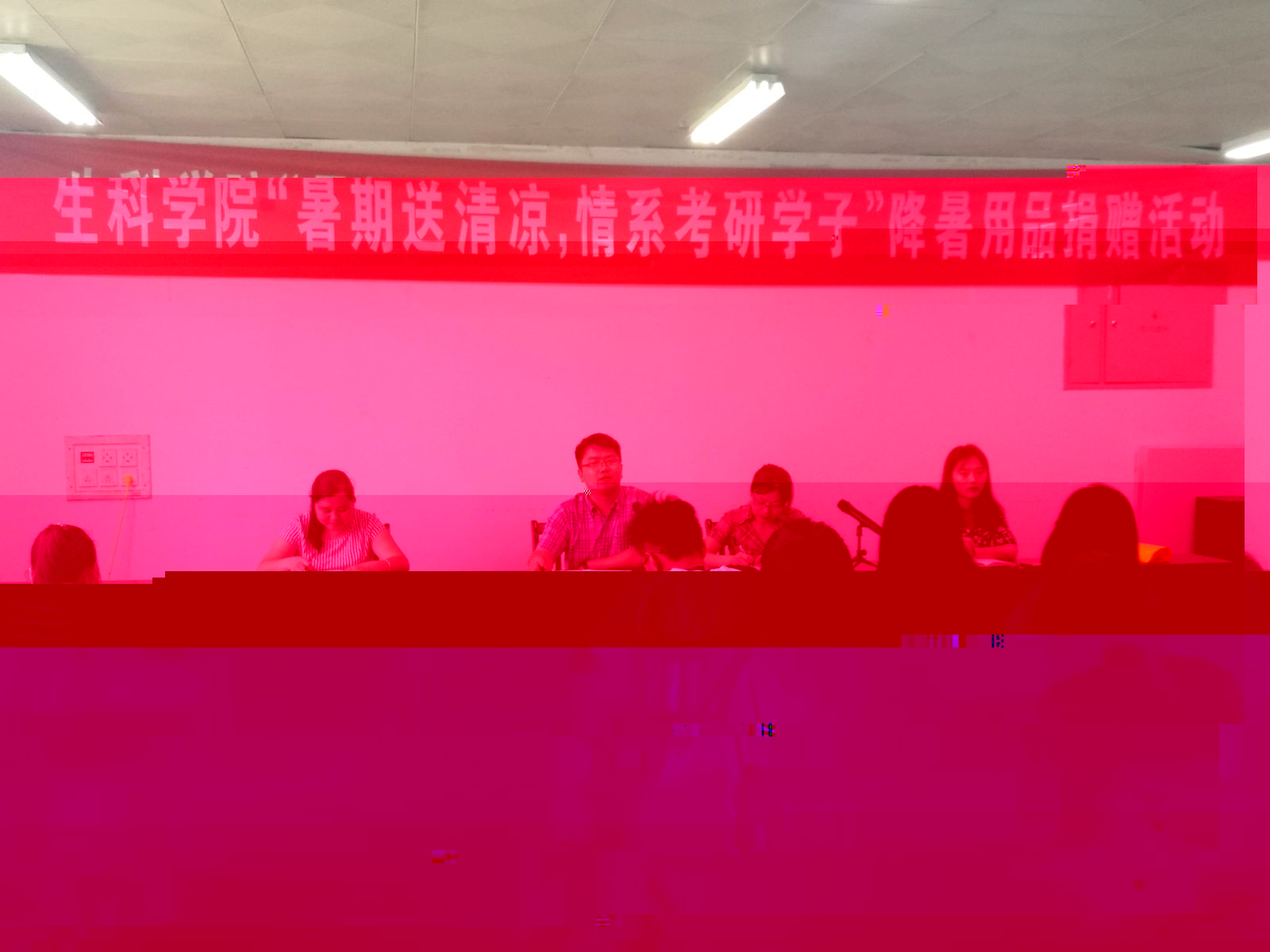 7月12号上午,伟德国际1946官网于行成樓208室舉辦了“暑期送清涼,情系考研學子”降暑用品捐贈活動。黨委副書記劉毅出席會議并講話,學工辦主任王明霞、輔導員張愛芳、王江川以及14級考研留校學生代表參加了此次活動。