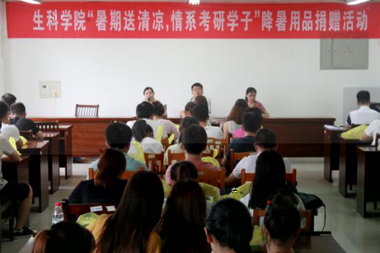 7月3号下午,伟德国际1946官网于行成樓舉辦了“暑期送清涼,情系考研學子”降暑用品捐贈活動。黨委副書記劉毅出席會議并講話,學工辦主任王明霞、輔導員張愛芳、14級班主任以及考研留校學生參加了此次活動。