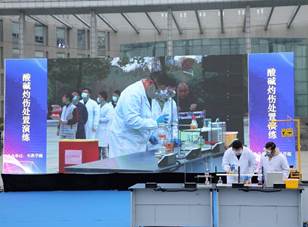 12月15日下午,由學校國有資産與實驗室管理處主辦的2021年實驗室安全應急演練在圖書館前廣場順利舉行,我院承辦了其中的實驗氣體中毒處置演練、燒瓶爆裂處置演練和酸堿灼傷處置演練三個項目。學院師生通過現場和網絡直播的形式觀看了此次演練。