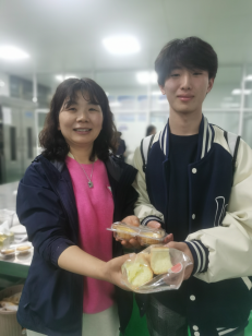 緊接着,老師帶着精心制作的甜品來到宿舍,與自己的學生們一起分享。“來上這麼一塊蛋糕,學習都不累了!”“第一次吃到老師親手制作的甜品,真得好甜啊!”“謝謝老師,你們辛苦了!”新能源1181李紅豔邊吃邊說道。