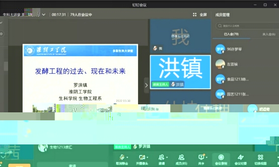 3月30日下午,生科學院于線上釘釘平台開展了以“發酵工程的過去,現在和未來”為主題的第二期生科大講堂講座。本期主講教師為生科學院羅洪鎮博士,生科學院部分學生參加了此次講座。