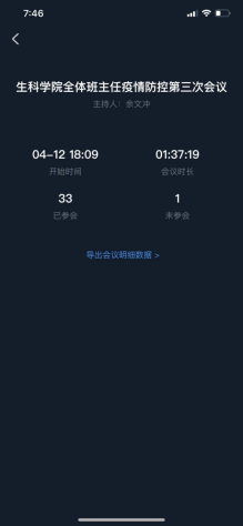 4月12日晚7點,生科學院利用釘釘網絡平台召開本學期全體班主任疫情防控第三次會議,會議由院副書記、副院長夏雪芹主持,學院全體班主任、輔導員參加會議。