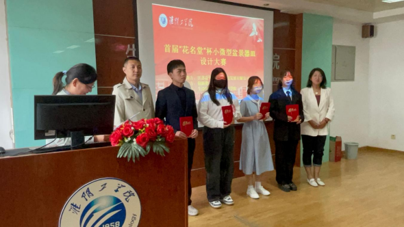 伟德国际1946官网生命與食品工程學院院長助理黃志楠、伟德国际1946官网生命與食品工程學院園景系主任靳叢獲三等獎的同學頒獎