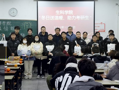 為舒緩考研學子壓力,幫助考研學子堅定信心。12月6日,生科學院于22106開展考研慰問活動系列活動。生科學院黨委書記朱永江、關工委周青教授、黨委副書記、副院長張月、學工辦主任餘文沖、大四輔導員張愛芳、資助輔導員劉林新、生科學院考研學子參加了活動。