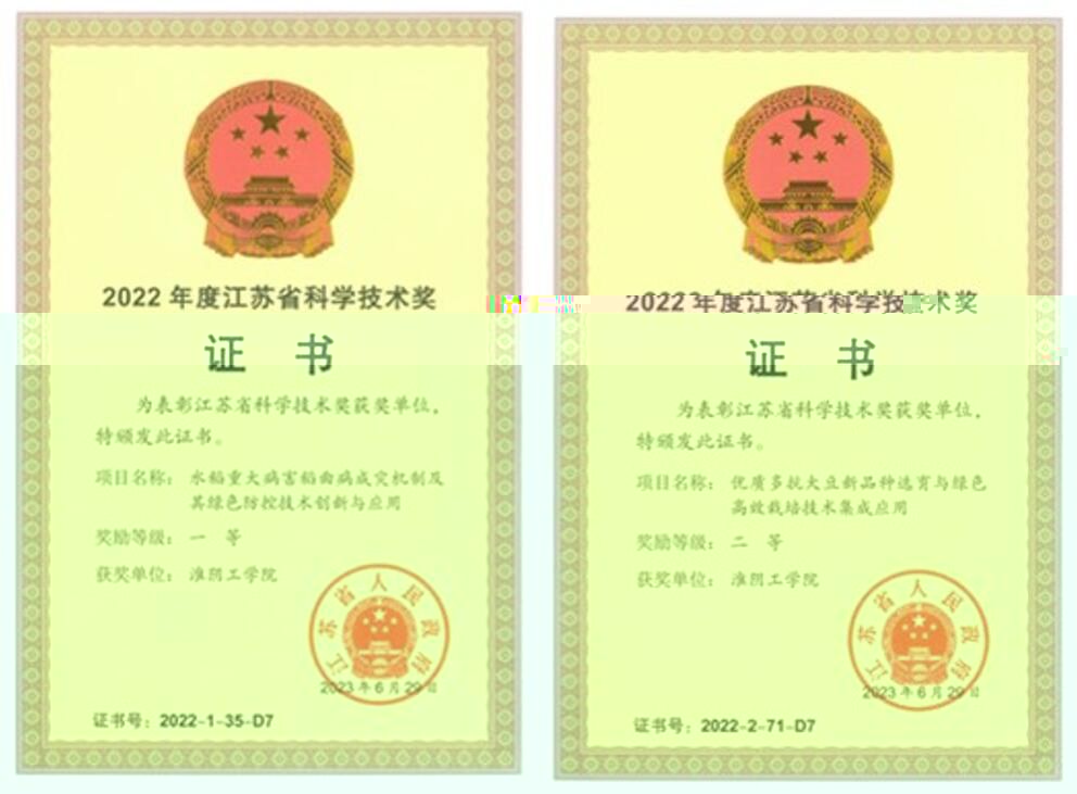 學院參與的“水稻重大病害稻曲病成災機制及其綠色防控技術創新與應用”和“優質多抗大豆新品種選育與綠色高效栽培技術集成應用”分别獲得江蘇省科技進步一等獎和二等獎。近日,第六屆江蘇省農學會科技獎勵成果獎的評選結果揭曉,經過形式審查、網絡評審、綜合答辯等多個環節的評審程序,共評選出41項獲獎成果,其中,我院參與的“全營養稭稈育秧基質塊/盤關鍵技術研發與應用”和“淮安地方特色蔬菜優異資源挖掘與産業化應用”分别榮獲一等獎和三等獎,顯示出我院在農業科學研究領域的突出貢獻。