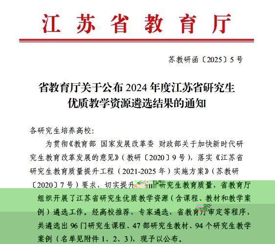 日前,教育部學位與研究生教育發展中心開展2024年度主題案例立項工作,江蘇省教育廳公布了2024 年度江蘇省研究生優質教學資源遴選結果。我院張國良教授申報的“農業廢棄物固碳減排溫室氣體的植物育苗基質制備及其應用”項目入選主題案例立項;“農業廢棄物綠色制備水稻育秧基質及其應用”入選江蘇省研究生優質教學資源(教學案例)名單。
