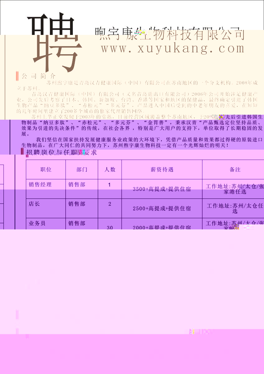 熙宇康生物科技有限公司招聘簡章