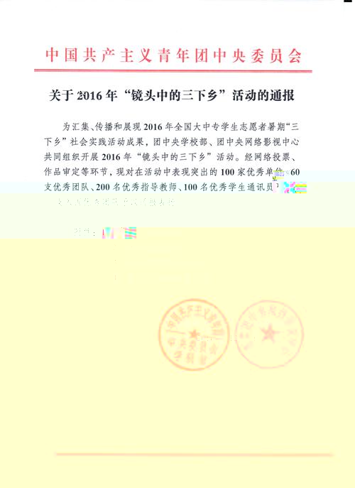 鍊接:關于2016年“鏡頭中的三下鄉”活動的通報http://sxx.youth.cn/zytz/hdgg/201612/t20161202_8908574.htm
